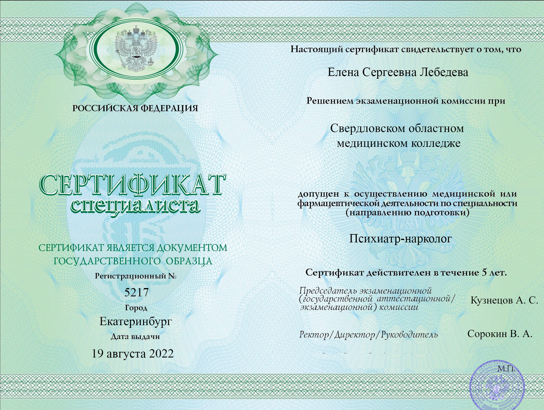 Елена Сергеевна Лебедева врач нарколог клиники доктора Стукаловой в Мирном Архангельская обл